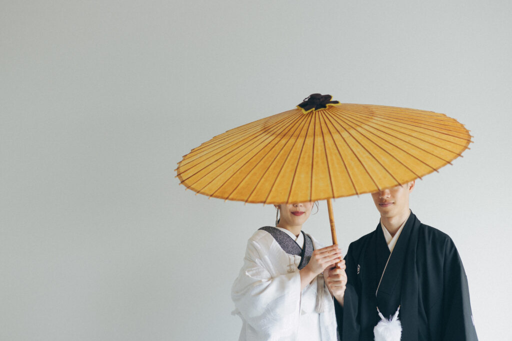 新郎新婦衣装(和装1点、洋装1点)・衣装合わせ・リハーサルヘアメイク当日新郎新婦ヘアメイク・撮影約2.5時間・造花ブーケ・アクセサリー撮影小物(椅子・絨毯・電飾)・全データ